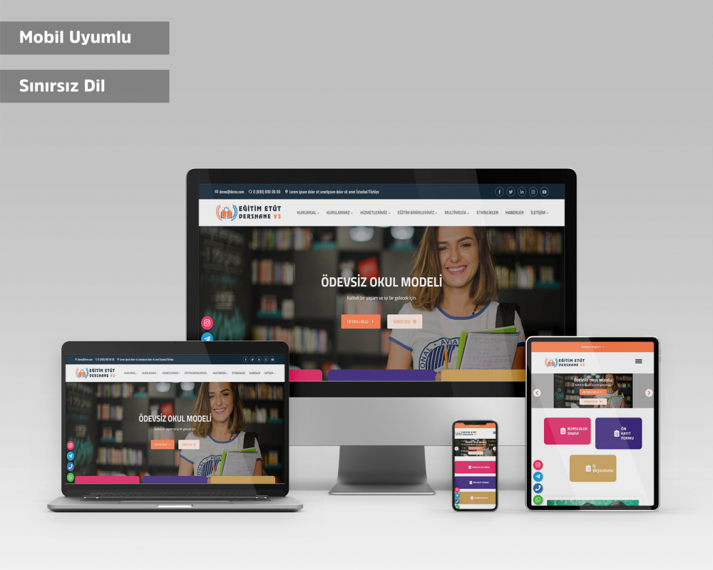 Responsive Mobil Uyumlu Tasarım. (Tablet ve Telefonlarınızda kusursuz görünüm.(Sınırsız Renk Seçeneği)